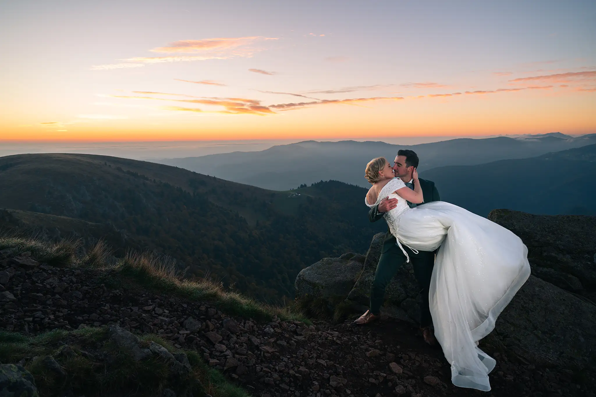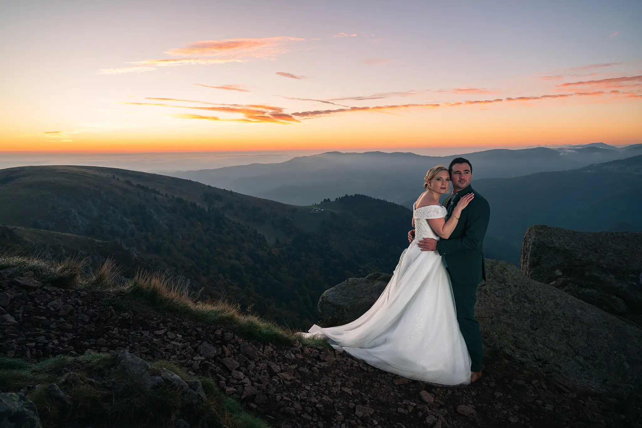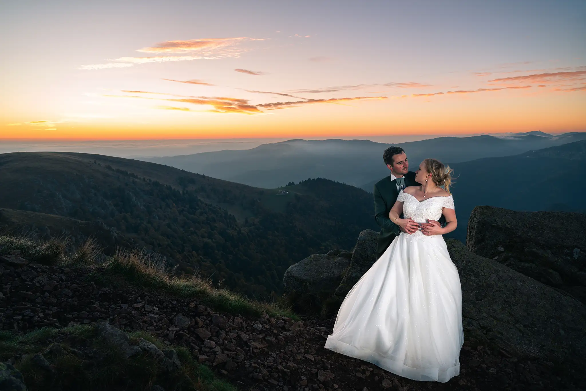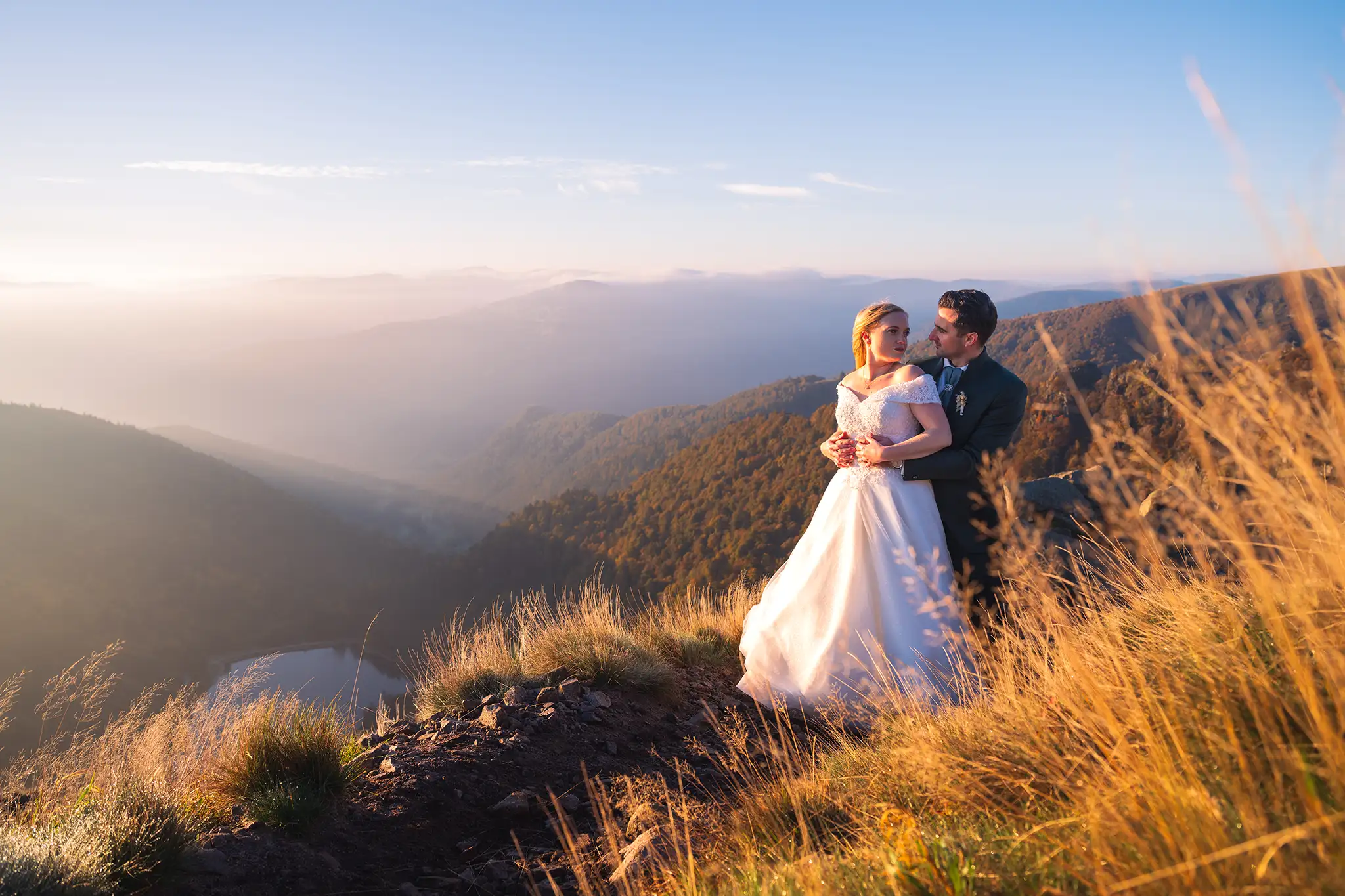 Un décors de rêve pour mettre en lumière leur mariage, les Vosges dans la brume au lever du jour.