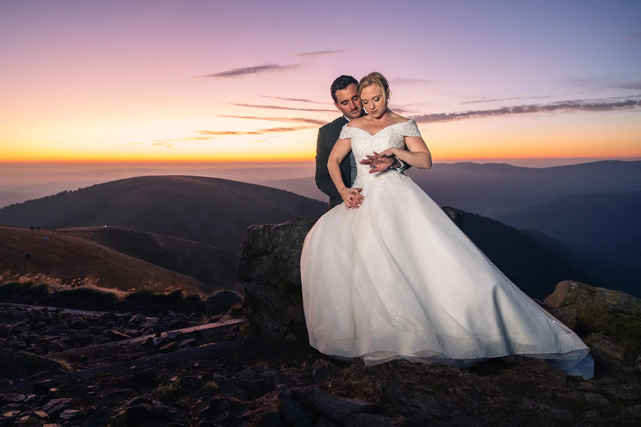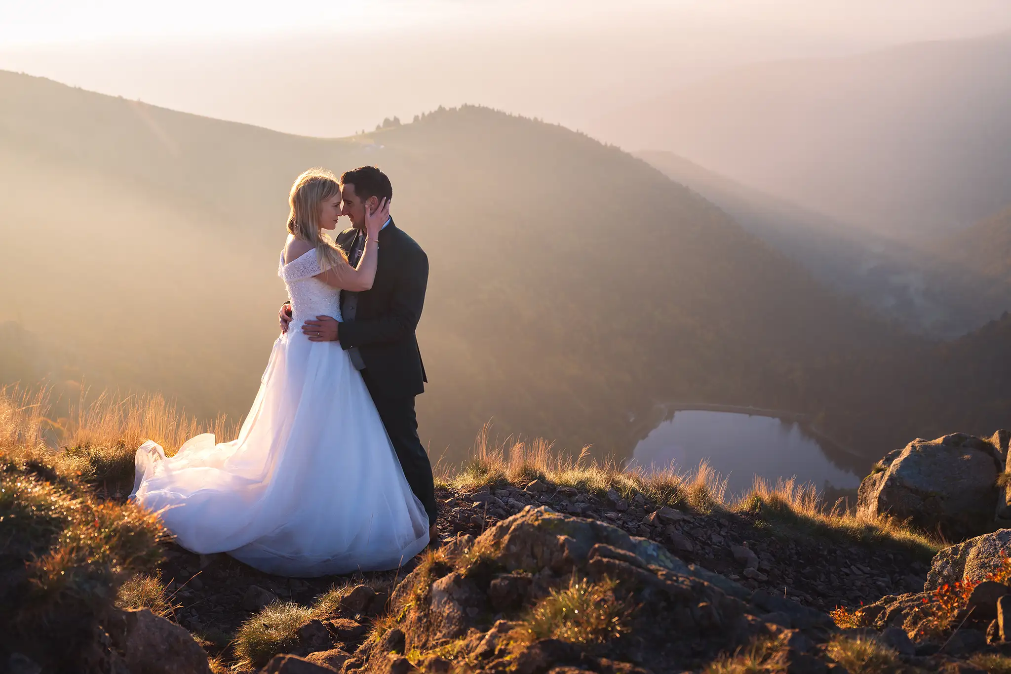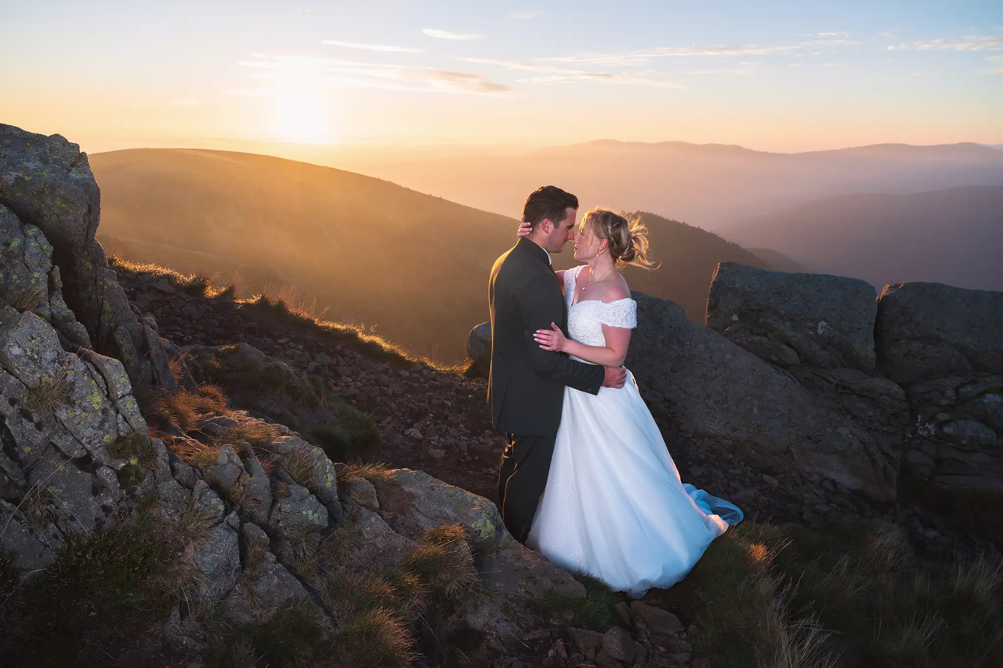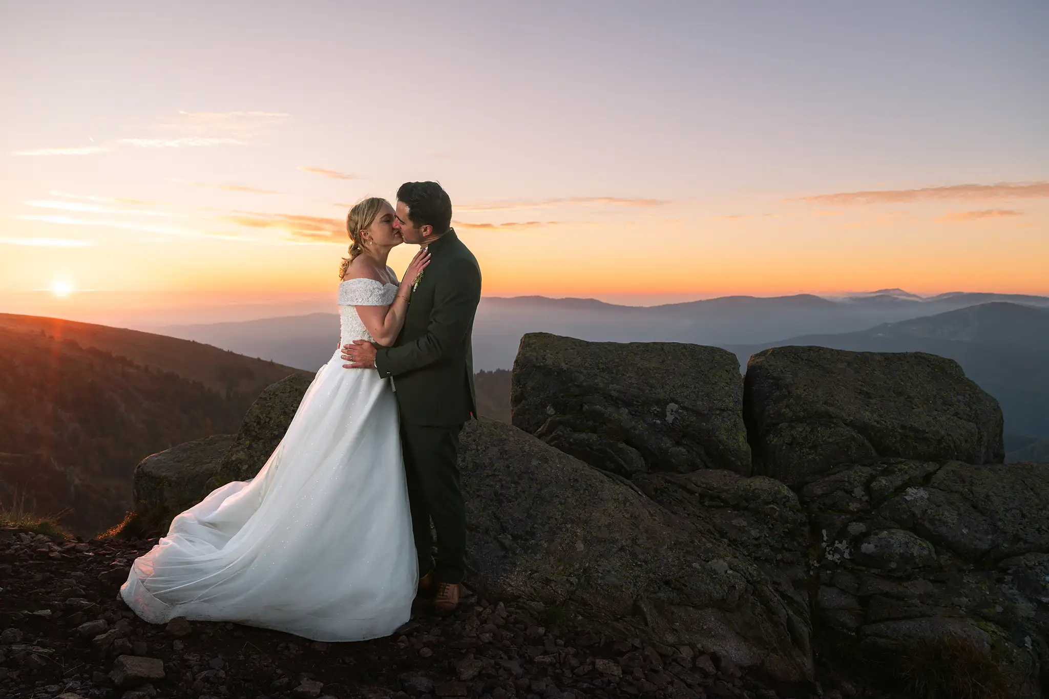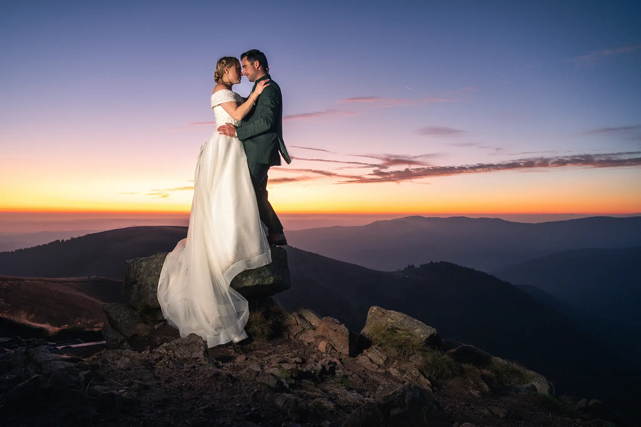 Un décors de rêve pour mettre en lumière leur mariage, les Vosges dans la brume au lever du jour.