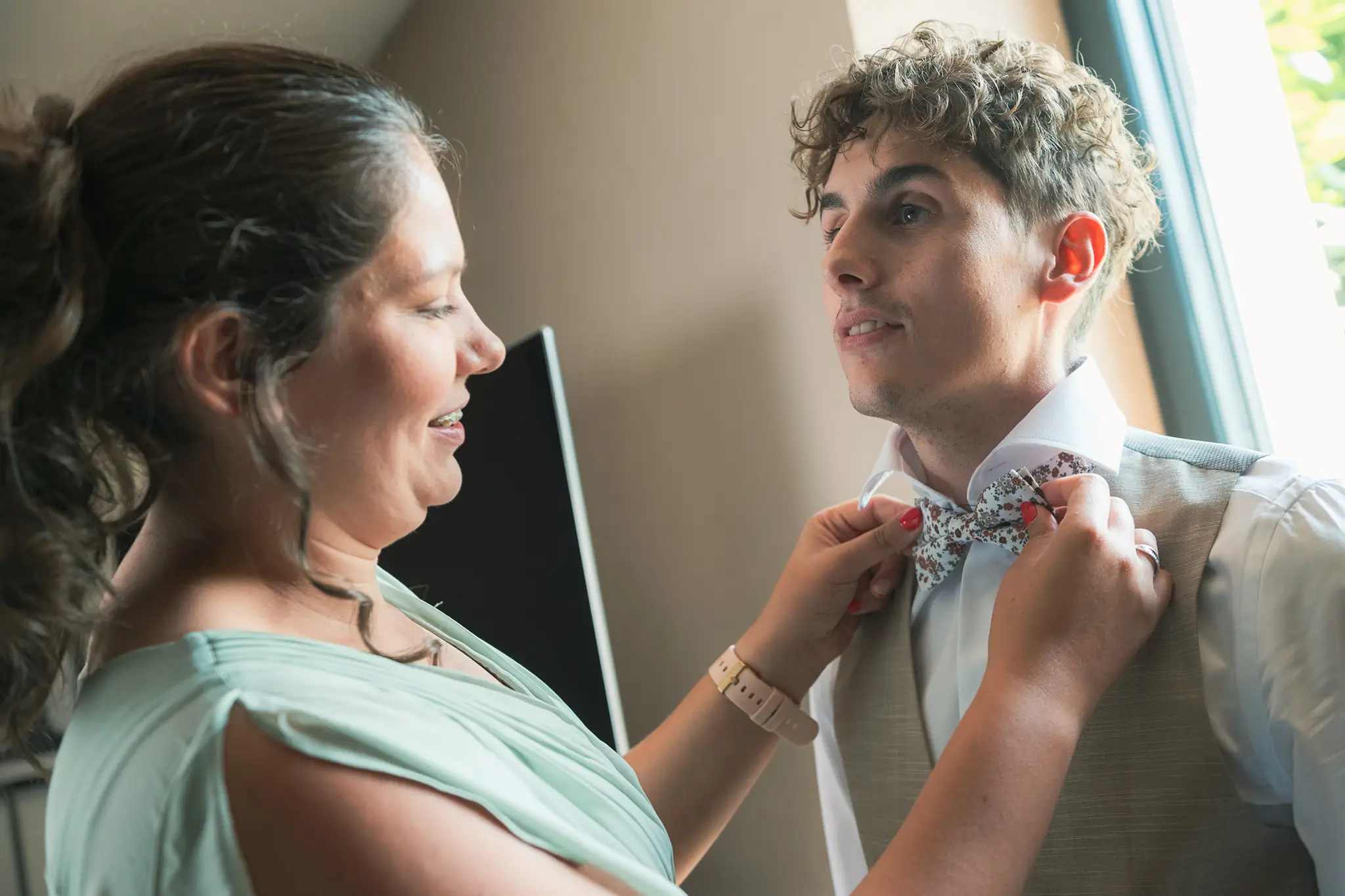 Les parents de François habitant une maison typique lorraine à proximité de Nancy, avec un grand jardin, Alison et François avaient prévu d’effectuer leurs préparatifs sur place, sans se croiser. Les préparatifs du mariage étaient prévus à 9 h le matin, avec le maquillage et la coiffure. C’était l’occasion idéale de réaliser des photos de ces moments privilégiés de leur mariage, capturant les émotions, les sourires et les moments de rires.